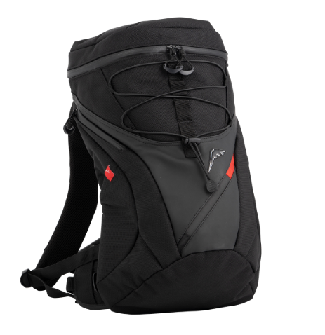 ●素材:1680dコーデュラ®ナイロン(PVC コーティング)、ナイロン(PVC コーティング)、ポリエステルメッシュ、人工皮革 ●カラー:ブラック ●サイズ:H530×W270×D200mm(18L) ●機能:グローブレスト用ラバーコード、メッシュポケット、レインカバー