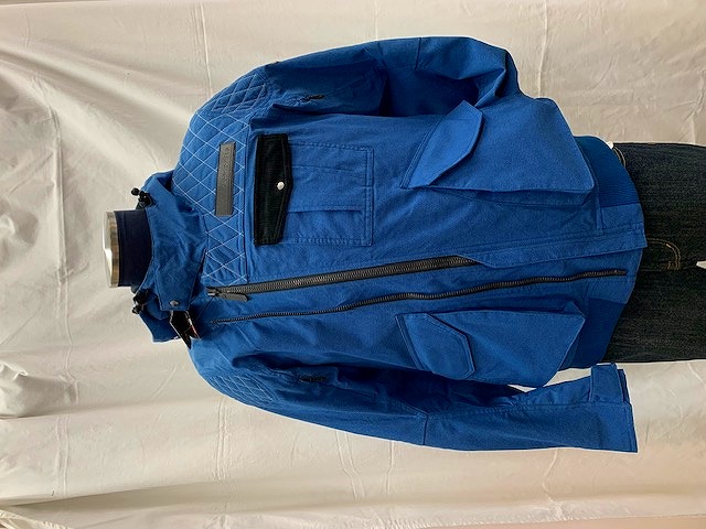 ●素材:〈表〉ナイロン80%,ポリエステル16%,ポリウレタン4%(TPUラミネーション,生地初期耐水圧10,000mm,透湿性10,000g/u/24h)〈裏〉ポリエステル100%(メッシュ) ●仕様:〈肩、肘、背中〉ソフトパッド(脱着式) ●カラー:@ブルーAブラック ●サイズ:M、L、LL、XL