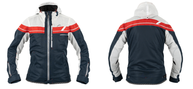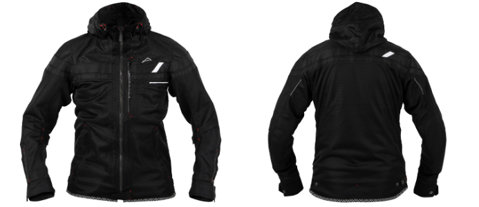 新たに特徴的な胸ラインをダブルラインに変更したフルメッシュパーカージャケットです。左胸大型ポケットにはロゴ入り止水ファスナーを配置し、サイズ拡大調整のフロントダブルファスナー仕様を採用。
