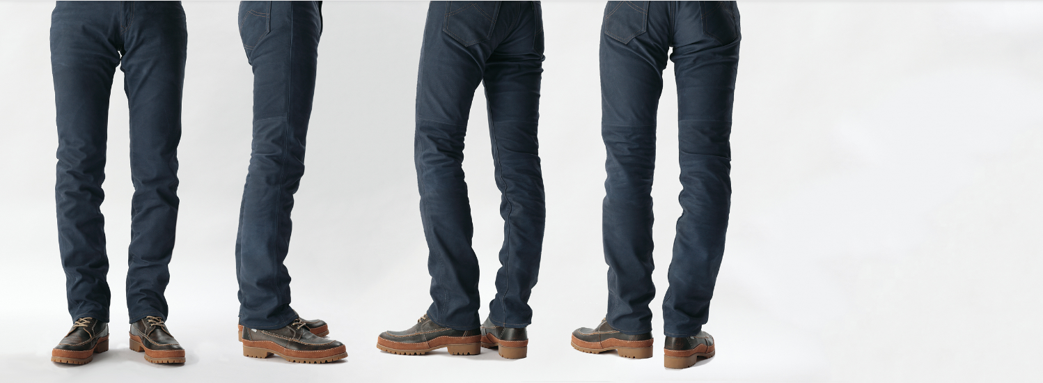 ブルージーンズ仕立ての画期的なレザーパンツ。北米産のステアに特殊加工を施し、デニムの持つ独特の風合いに仕上げました。シルエットは誰にでもフィットする飽きのこない定番のストレートタイプとなっています。牛革にフッ素加工を施すことにより、優れた撥水効果を確保。レザーでありながら日常のメンテナンスも容易で、自宅での丸洗い洗濯が可能です。 膝に別売りのKフォームプロテクターを装着できます。外観はナチュラルなままプロテクション性をプラス出来ます。