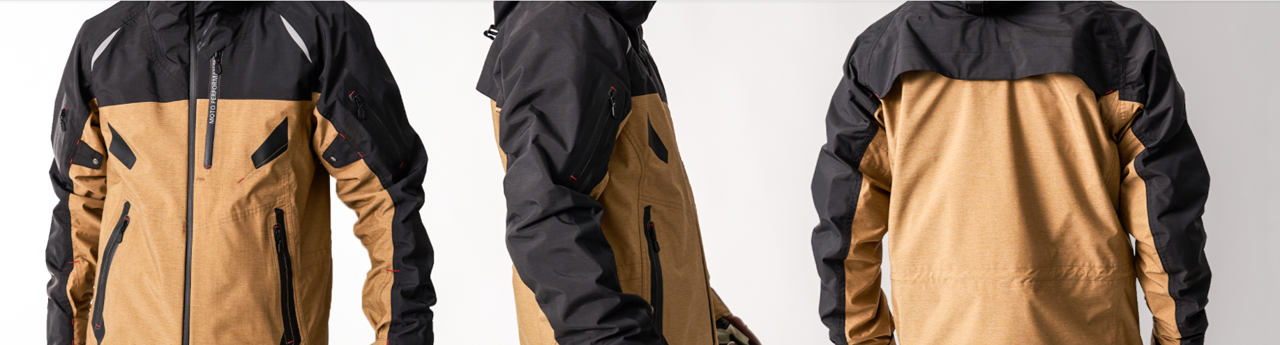 ●素材:〈表〉ナイロン75%,ポリエステル25%(TPUラミネーション,生地初期耐水圧10,000mm,透湿性10,000g/u/24h)〈裏〉ポリエステル100%(メッシュ)、フード裏/綿100% ●仕様:〈肩、肘〉Thin CEプロテクター(脱着式)〈背中〉ソフトパッド(脱着式) ●カラー:@ブラックアウトAネイビーBレッドCブルーDブラウン ●サイズ:M、L、LL、XL