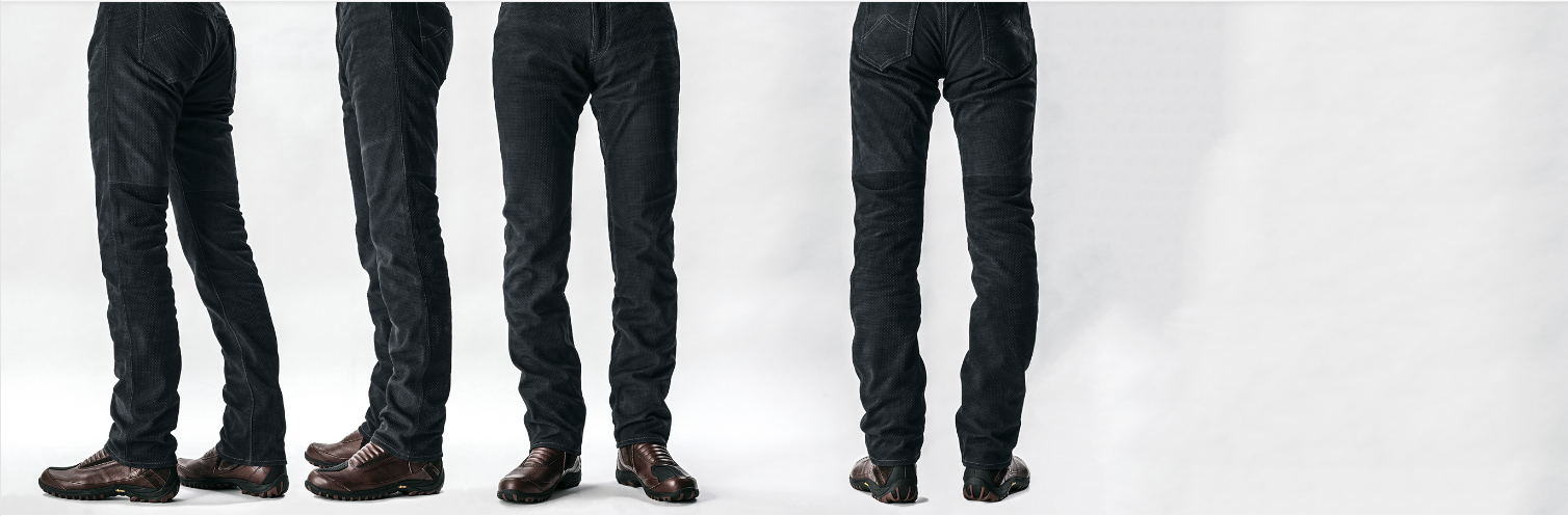 全面にクシタニ独自のパンチングメッシュを施した、夏季に快適に使えるエクスプローラージーンズ。北米産のステアに特殊加工を施し、デニムの持つ独特の風合いに仕上げました。シルエットは誰にでもフィットする飽きのこない定番のストレートタイプとなっています。牛革にフッ素加工を施すことにより、優れた撥水効果を確保。レザーでありながら日常のメンテナンスも容易で、自宅での丸洗い洗濯が可能です。 膝に別売りのKフォームプロテクターを装着できます。外観はナチュラルなままプロテクション性をプラス出来ます。