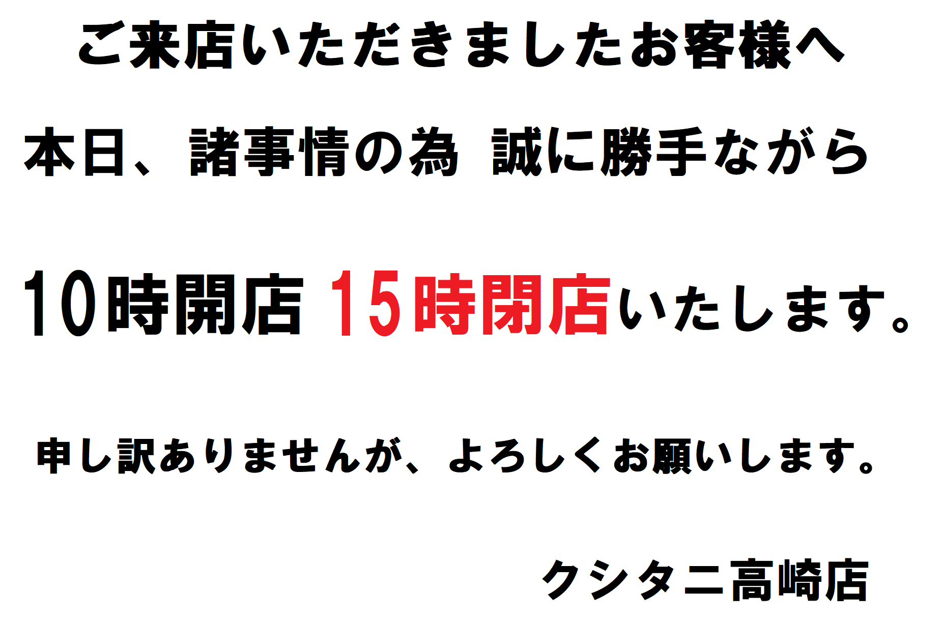 クシタニ高崎店のある、群馬県高崎市より連絡ありました。
