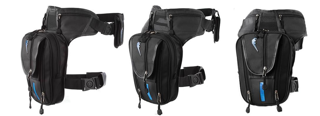 安定感のあるレッグバッグ。 さっと使えるカードサイズのユーティリティーポケットを左右に装備。脱着部は可動性のあるバックルを採用しています。太ももに装着するベルトは、上下に位置調整が可能です。レインカバー付き。