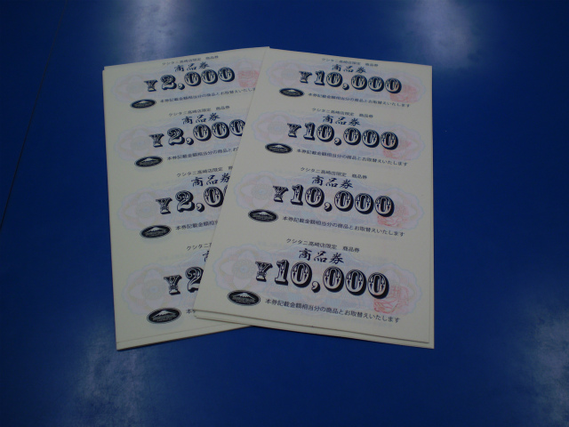 なんと、10000円の商品券をお買い求めいただきますと、2000円分の商品券が付いてくる。