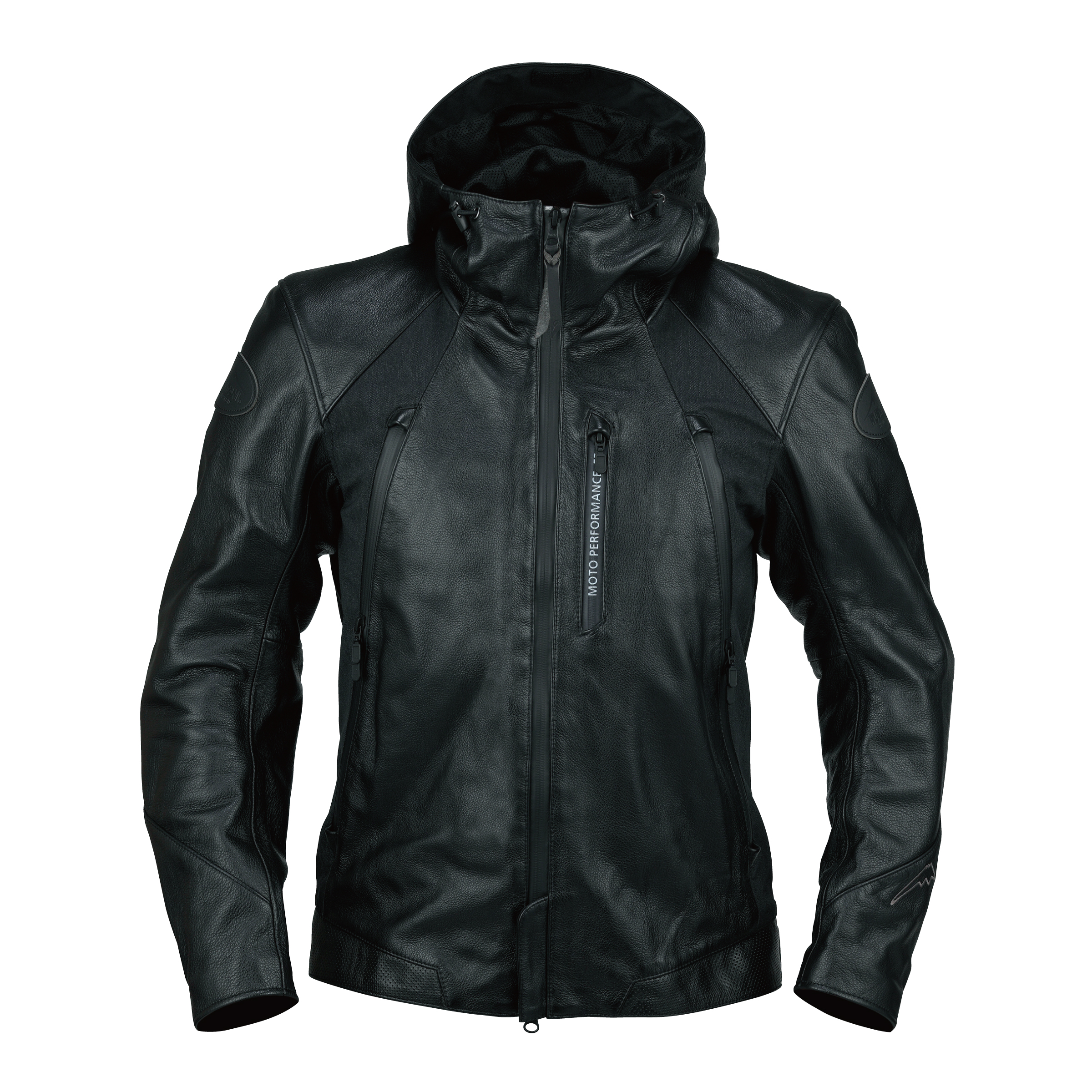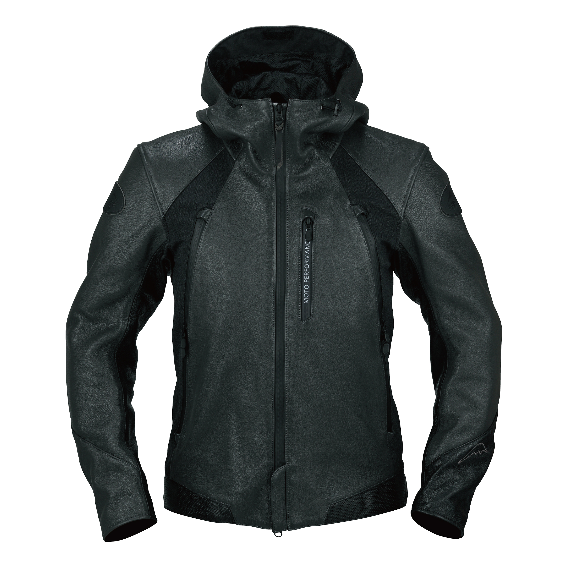 ソフトな革を採用したフード付レザージャケット。カジュアルな印象で気軽に着られる一着。 脇のファスナーの上部を開けるとエアーインテークに、下部はポケットになっています。内側のファスナーで機能を拡張できるベストを装着可能。幅広い季節に対応します。前身脇のヘリンボーン素材が柔らかな印象を与えます。襟周りのパターンを改良し、身頃・袖にゆとりを持たせ、着丈も長くするなどしたマイナーチェンジモデル。