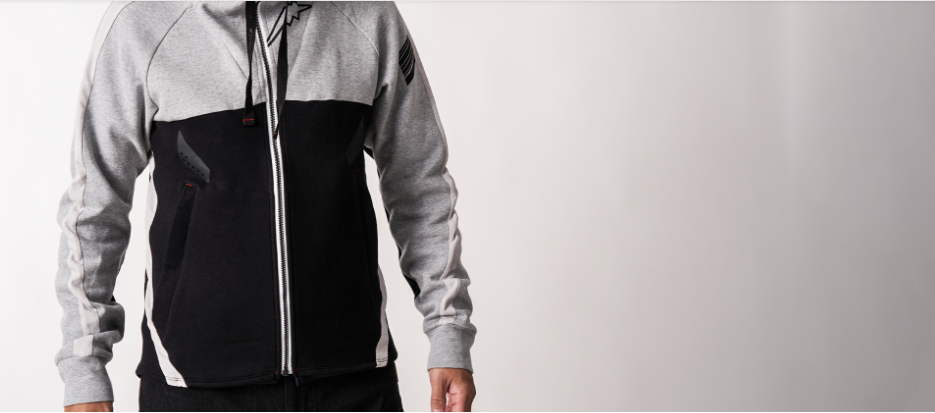 着回しがきくオリジナルフードデザインのフーディー。レーザーアウトレットベンチレーション、リフレクトプリントを施しています。