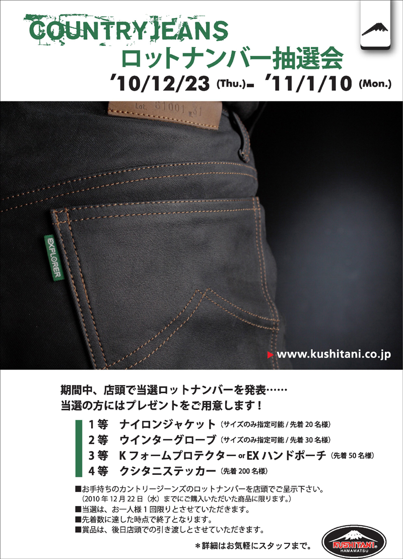 <<カントリージーンズロットナンバー抽選会>>終了間近!!