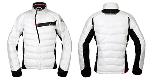ジャケットのインにプラスして使える暖かく、軽い着心地のダウンジャケット。運動性を考慮して身頃脇・袖下・襟後を防風ストレッチ素材に切り替えています。フロントファスナーをサイドにオフセットし、ジャケットのファスナーとの干渉や首へのストレスを低減。付属の収納袋でコンパクトに持ち運ぶ事が出来ます。