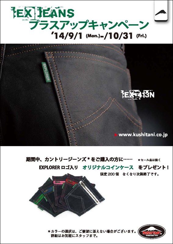 ■期間中、カントリージーンズをお買い求めの方、EXPLOERロゴ入り、コインケースプレゼント。