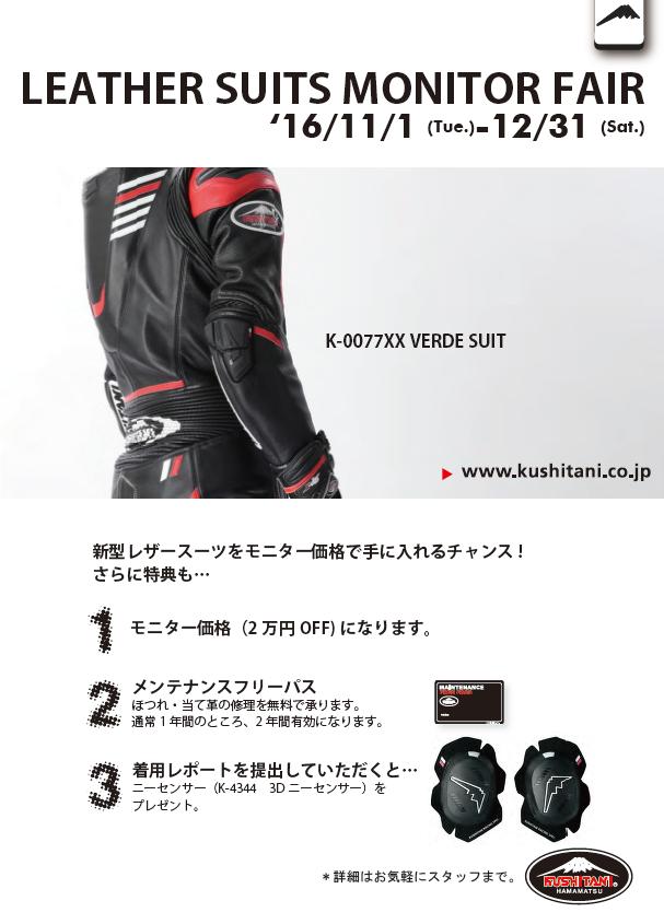 12月最終営業日まで、お得な新型レザースーツモニターフェアー開催中 です。