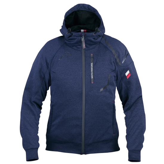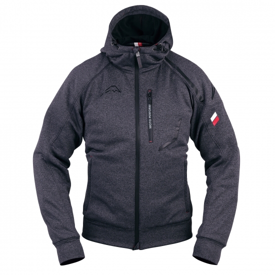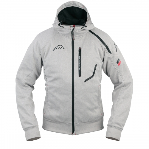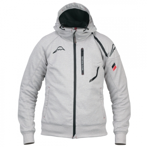 ソフトなジャージ素材でストレスのない着心地のスポーツライディングパーカー。脇下・背中にレーザーアウトレットベンチレーションを設けています。走行中は、フードをタブに留めてご使用ください。