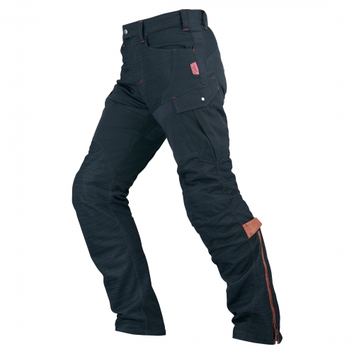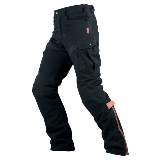 コーディネートしやすいメッシュワークパンツ。メイン素材をスラブ調プリントのポリエステルメッシュにし通気性を向上させています。強度が必要な部位はノーメッシュ素材に、内腿・ウエスト横をストレッチ素材に切り替えています。膝にCEプロテクターを装備。