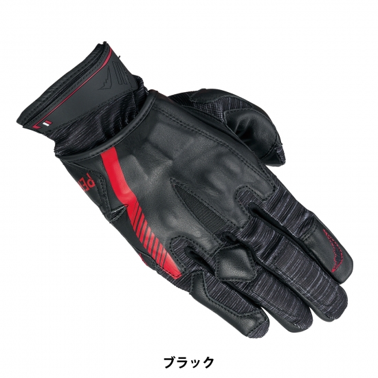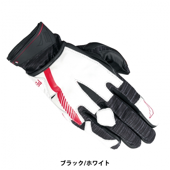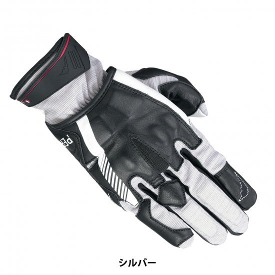 ●素材:<甲部>撥水牛革、ポリステルメッシュ、2WAYトリコット、合成皮革<掌部>撥水牛革<プロテクター>ストレッチハードプロテクション ●カラー:@ブラックAシルバーBブラック/ホワイトCネイビーDレッド ●サイズ:M、L、LL、XL