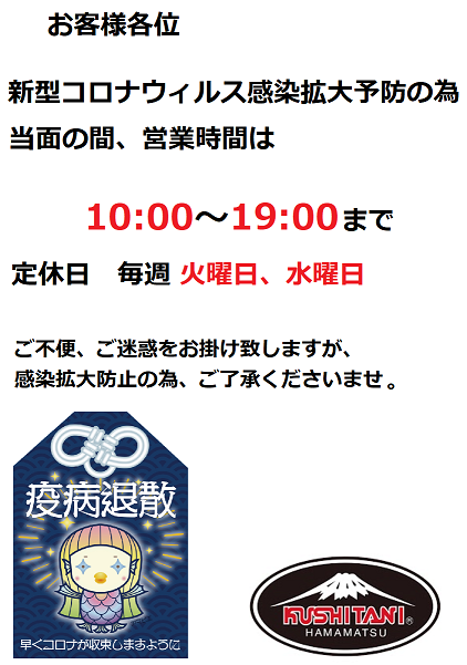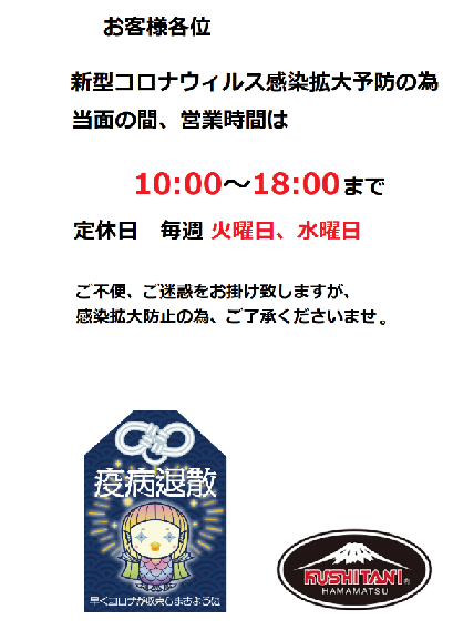 当面の間、営業時間AM10:00〜PM06:00までの営業とさせていただきます。