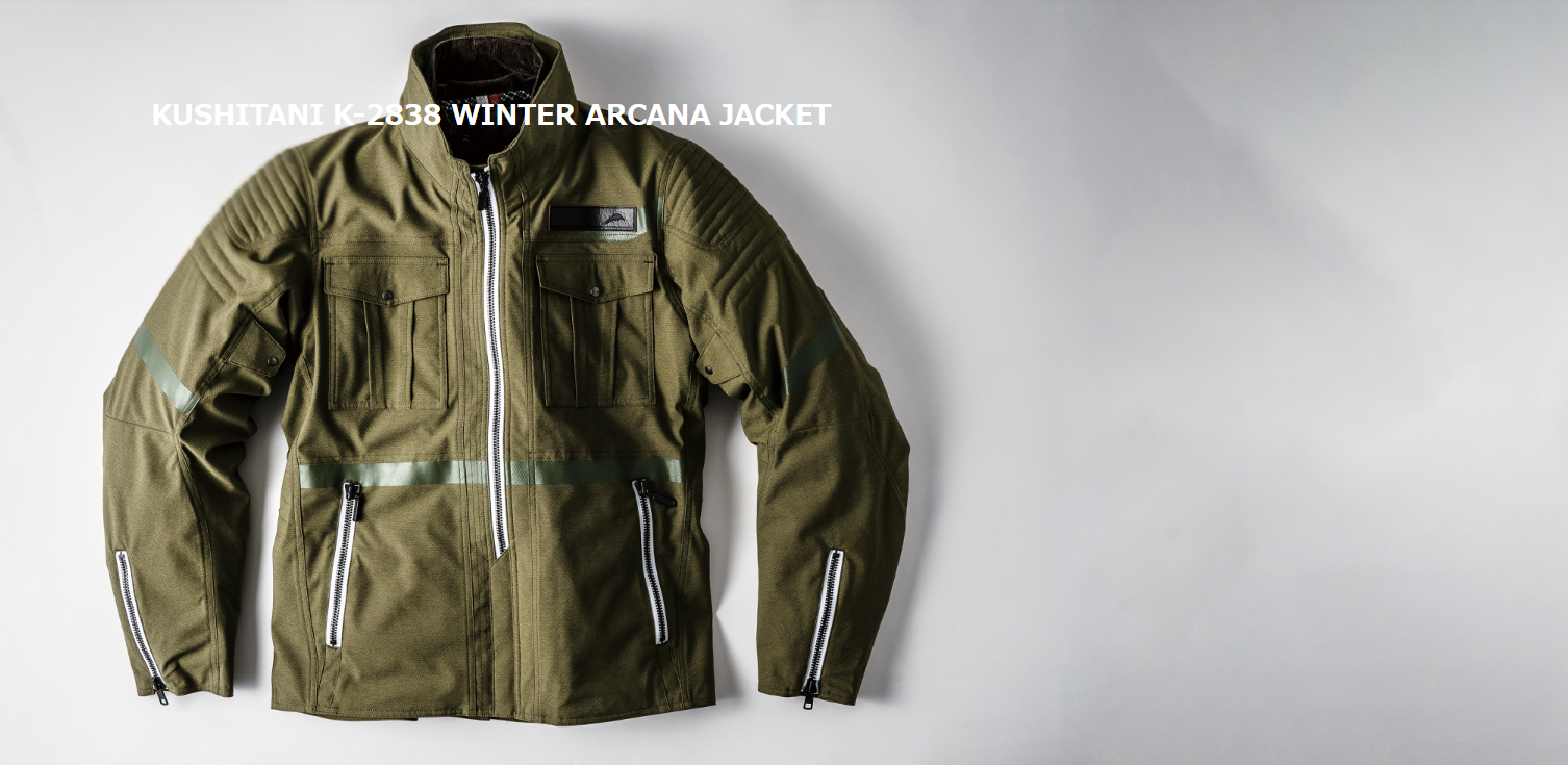 防水生地を採用することでアーバンユースからツーリングまで使用できるジャケット。迷彩柄のストレッチジャガード素材に革素材をアクセントに組み合わせ、質感のある仕上がりに。高機能ウェアをバイクのみならず普段使いしてもらいたいというコンセプトですが、もちろんライディングに適した機能は全て持ち合わせています。脱着式防寒インナーの中綿には軽く保温性の高いダウンライクを使用。