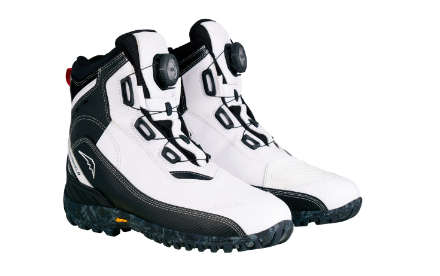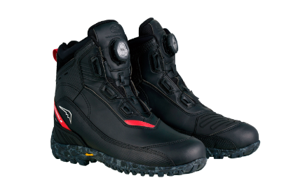 ミドル丈防水ライディングシューズ。アッパーパーツにエンボス加工を、ディンプルレザーや裏革をあしらい立体感のある仕上がりに。BOA®Mシリーズシステムにより簡単に均一なフィット感を得る事ができ、グローブをしたままでも微調整が可能です。耐摩擦性・グリップ性に優れたビブラムソール『ADVENTURETRAVEL』を採用。マーブル調カラーソールをセメント製法で仕上げています。
