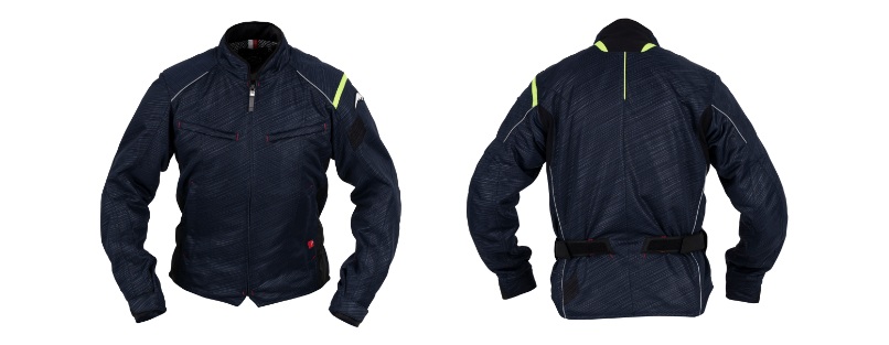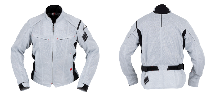 スラブ柄エンボスを施したシンプルなデザインのフルメッシュジャケット。ジャケット全体から風を通し夏場のライディングを快適にします。肌寒い時にはウインドブレーカーと重ねることで幅広い気温に対応。サイズ拡大調整のフロントダブルファスナー仕様を採用しています。腰ベルトで身体に丁度良くフィットさせることができます。