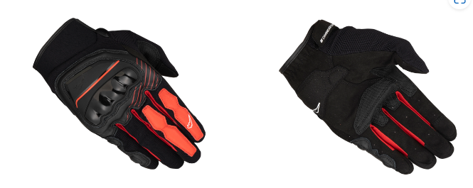●素材:〈表〉ナイロン95%,ポリエステル5%(2WAYストレッチ)、人工皮革、牛革、ネオプレン〈裏/甲部〉ポリエステル100%(メッシュ)〈プロテクター〉ナックルプロテクター ●カラー:@ブラックAブラック/レッドBグレー ●サイズ:S、M、L、LL、XL