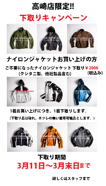 株式会社 クシタニ高崎 〒370-0069 群馬県高崎市飯塚町1190-4-7 [OPEN] 10:00〜19:00 土日祝 10:00〜18:00 冬期11月〜2月:10:00〜18:00 [CLOSED] 毎週火曜日/水曜日 [Tel] 027-363-8192 [Fax] 027-363-8193