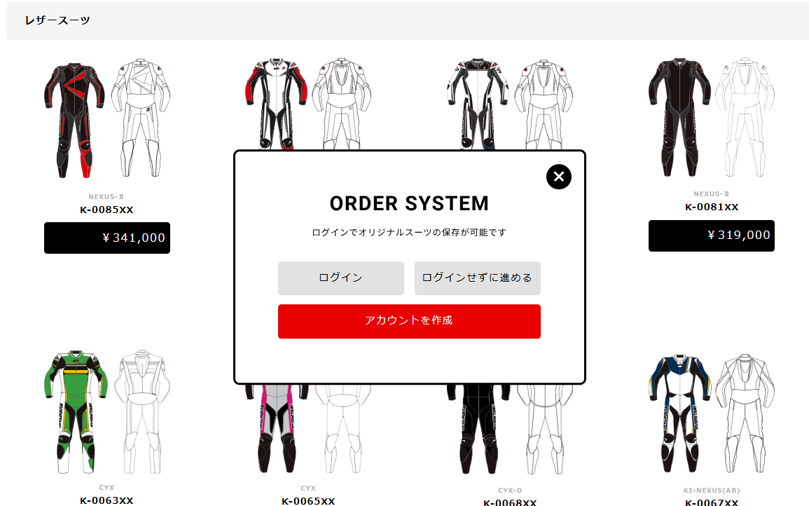 レザースーツは基本受注生産です。