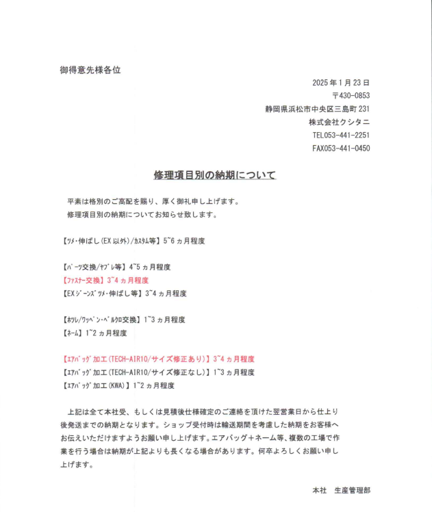 【修理の納期お知らせ】