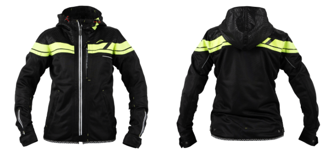 ライディング機能満載のスポーツジャケットです。ジオパターンエンボス柄素材や後襟部から袖口まで続く滑らかなラインにシェードプリントを配置し、よりスポーティー感を追求しています。サイ ズ拡大調整と、大型エアインテイクを兼用したフロントダブルファスナー仕様を採用。