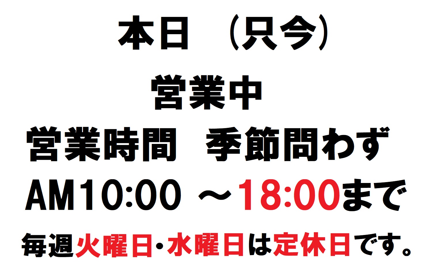 【営業時間のお知らせ】