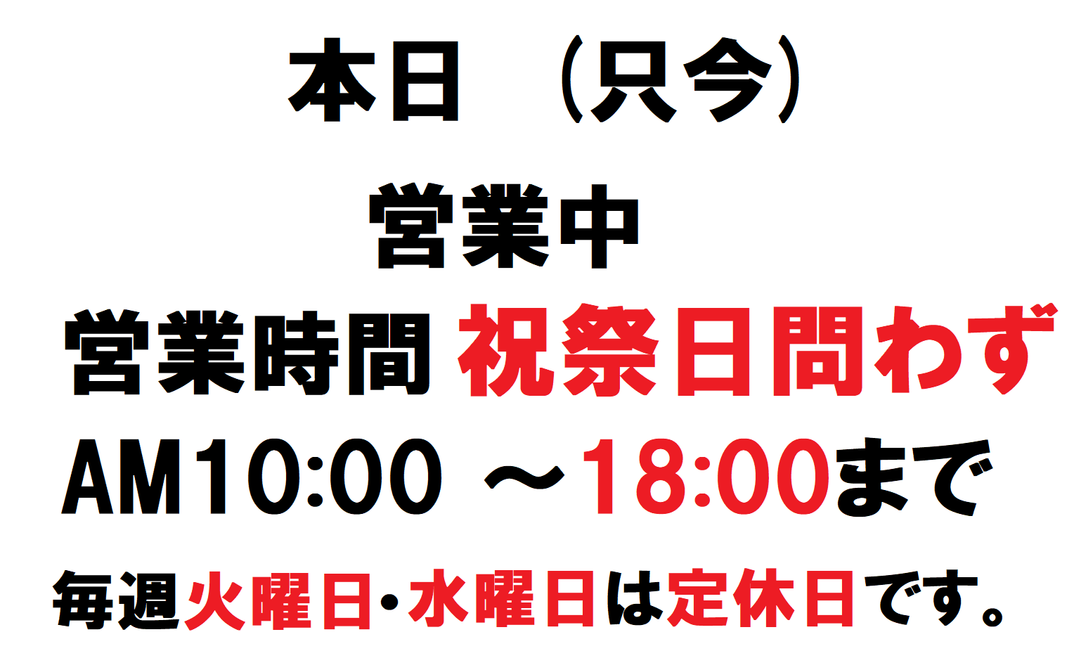 尚、当面の間、営業時間AM10:00〜PM18:00までの営業といたします。